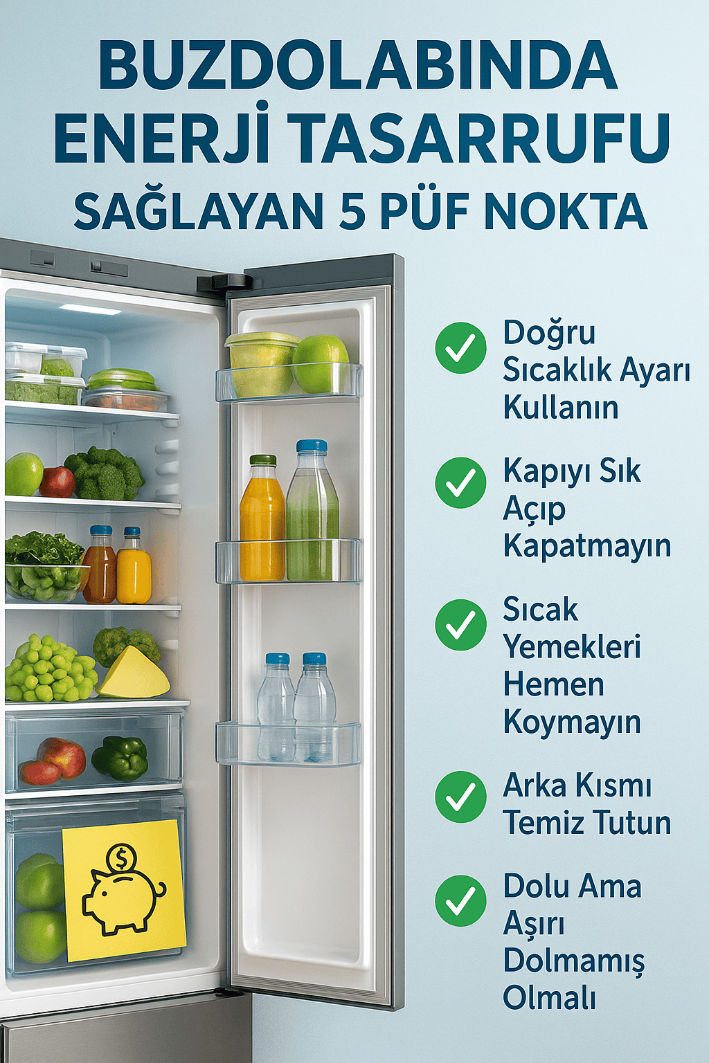Basit alışkanlık değişiklikleriyle buzdolabı kullanımında ciddi enerji tasarrufu sağlanabilir.Enerji verimliliği hem doğayı korumanın hem de bütçeyi kontrol etmenin en etkili yollarından biridir. Yukarıdaki püf noktalarını uygulayarak siz de buzdolabınızdan maksimum verimi alabilirsiniz.